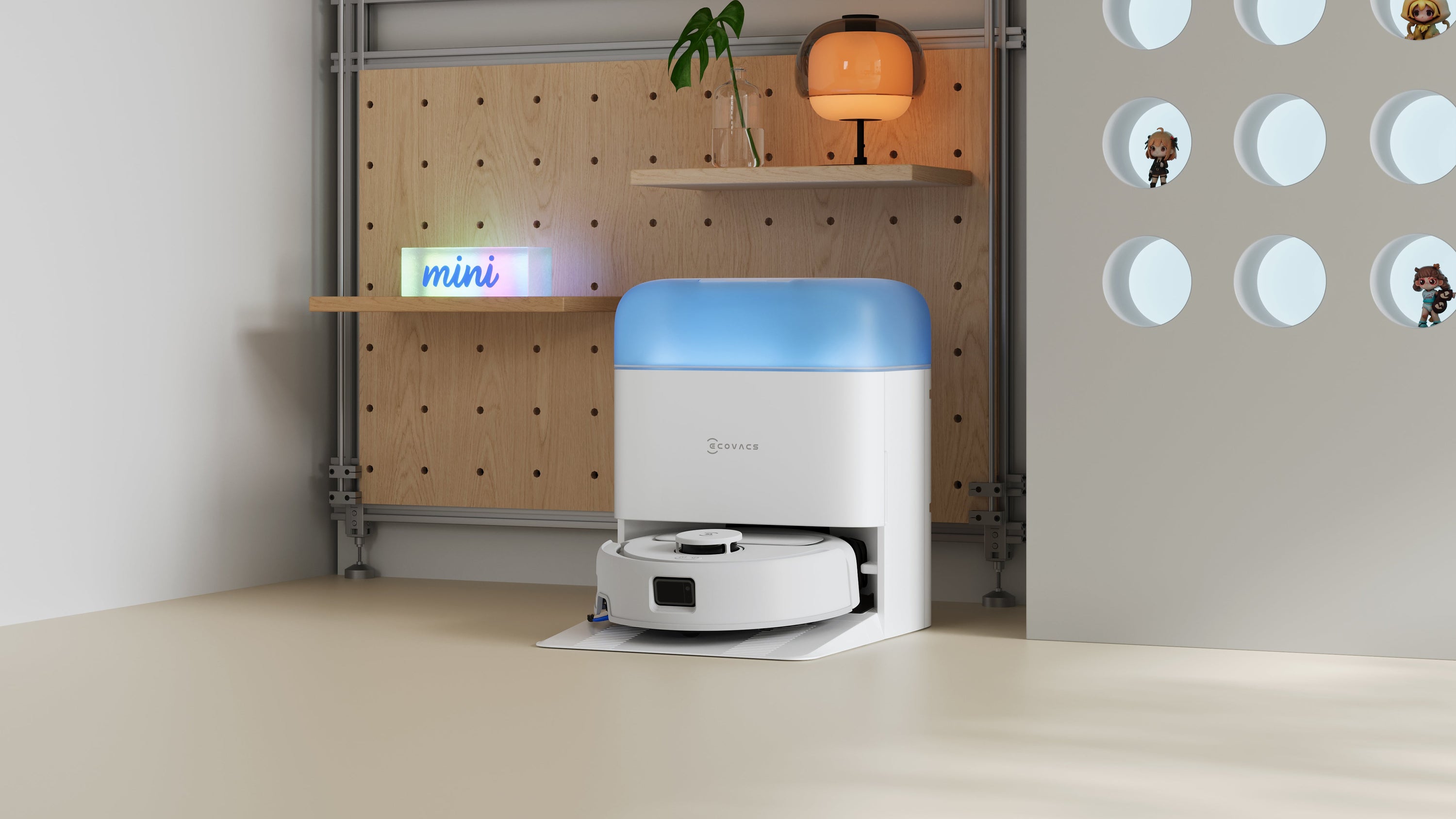- "Smallest ever" refers to the DEEBOT main unit and station of the ECOVACS DEEBOT mini series, which are the smallest among all ECOVACS all-in-one stations. An all-in-one station refers to a station with automatic dust collection and automatic mop washing functions. Actual usage may vary.