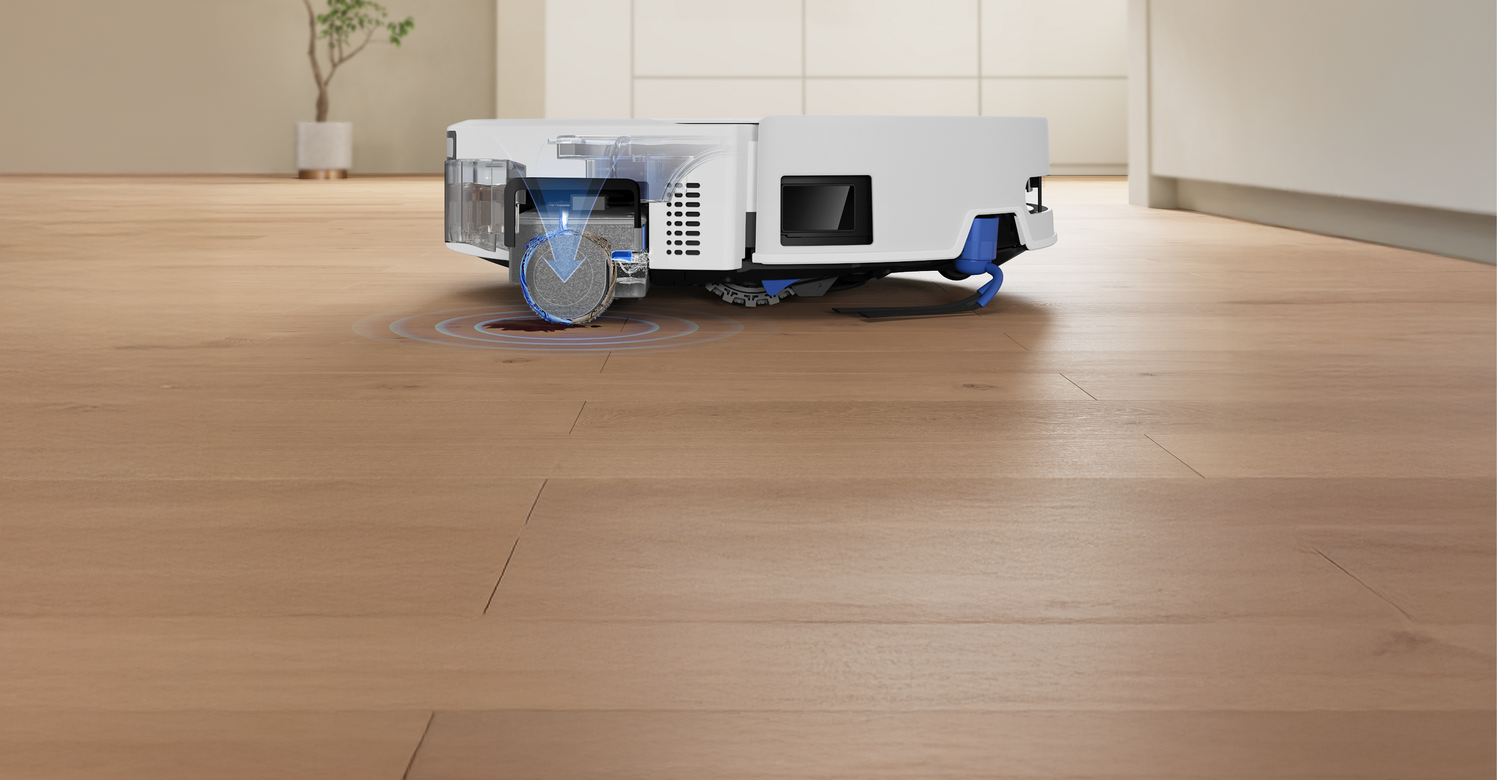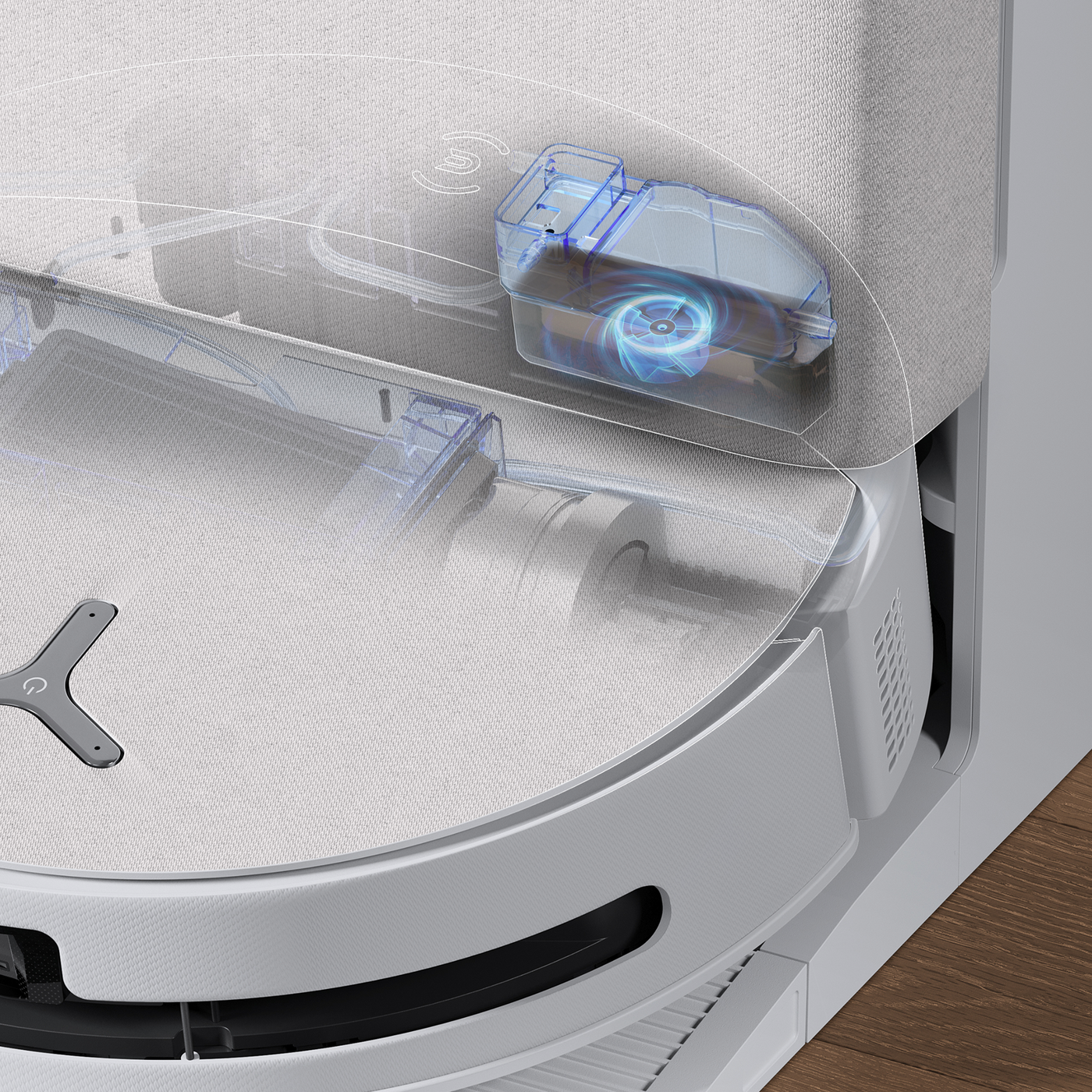 機身污水盒內建 5000 轉自動高速螺槳。回基站清洗時同時針對污水盒內壁進行清潔。讓污水不殘留,長期不發臭。