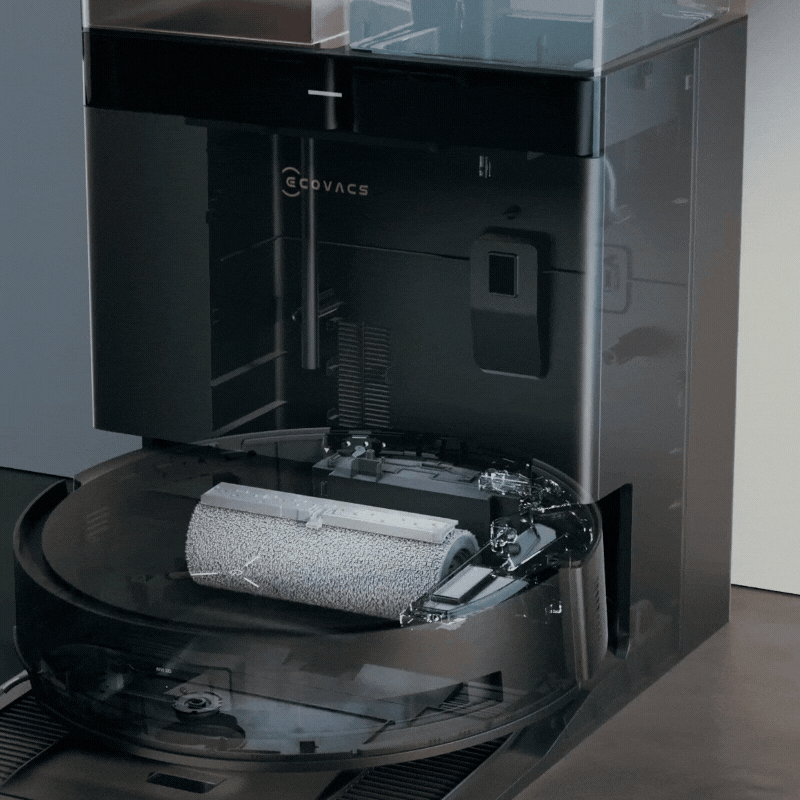 - "One roll and it's clean" and "One pass and it's clean" refer to the fact that the drum cleaning module of the Ecovacs DEEBOT X8 series products uses a rotary pressurized cleaning method to clean stains. Due to different standards for determining cleanliness, the specific scenario is based on home use.