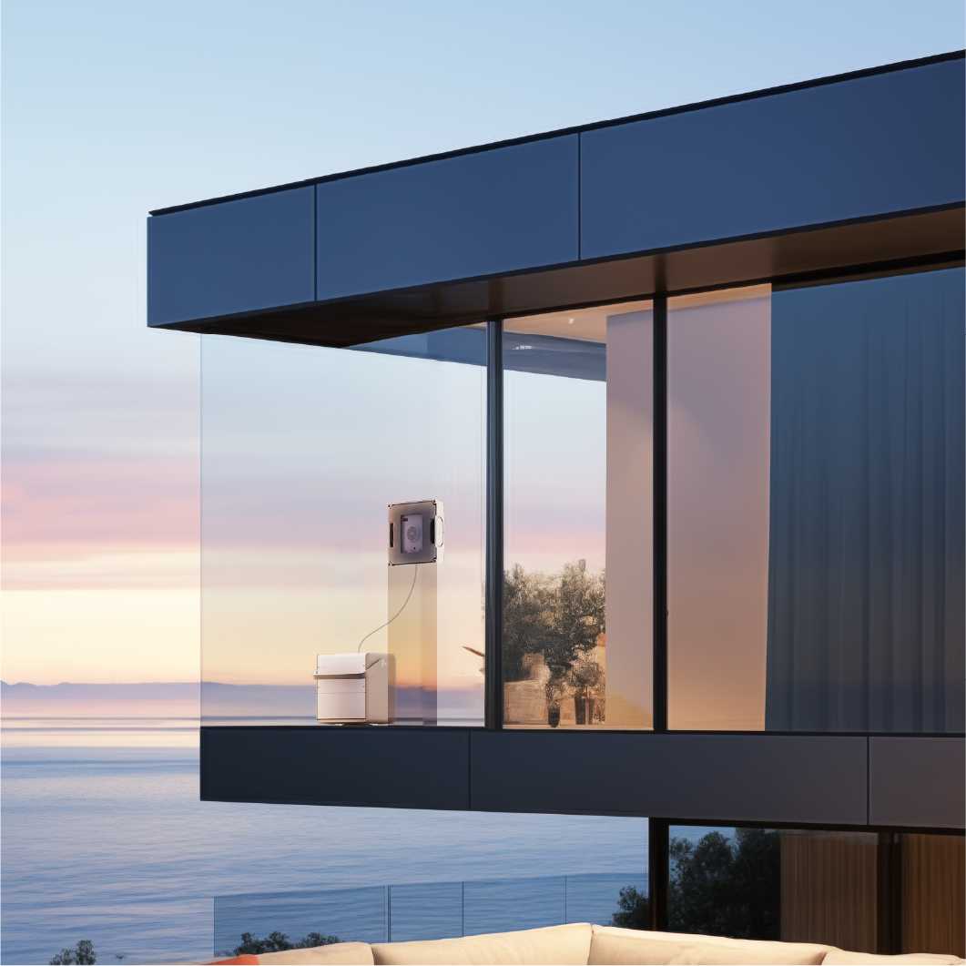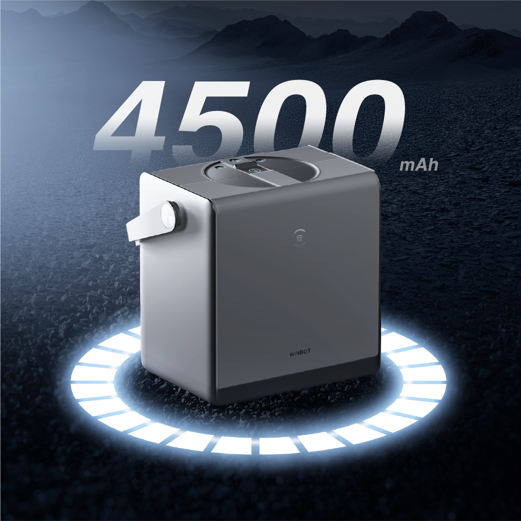 2. The data comes from the Ecovacs laboratory. The base station has a built-in 4500mAh battery. After being fully charged, it can be used for up to 110 minutes in the quick cleaning mode and can clean 55 square meters of windows (front and back sides totaling 65 square meters). The specific details are subject to actual household use;