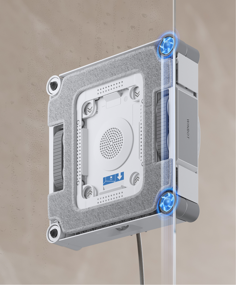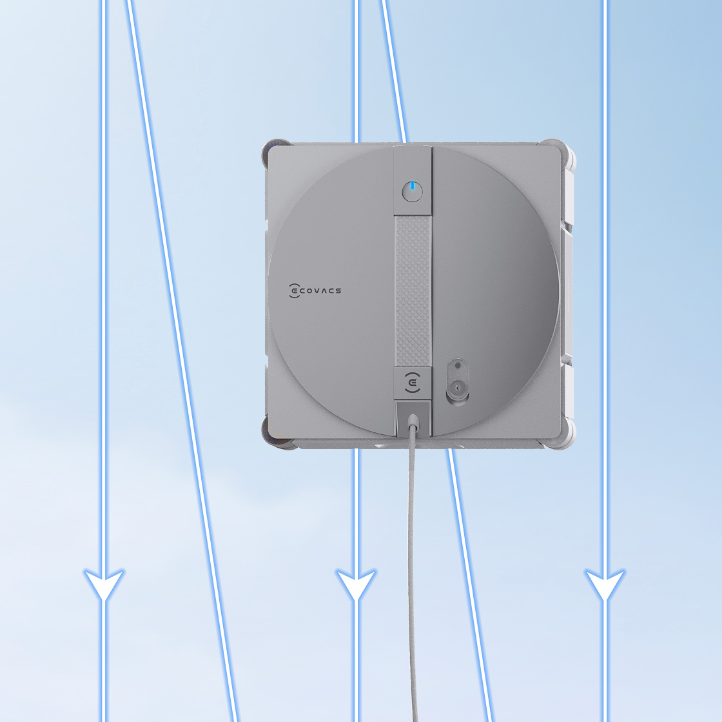 "30分鐘低電保護":數據源自ECOVACS實驗室,當ECOVACS WINBOT W3系列產品斷開電源後,可以保持吸附30分鐘以上,並發出警報,具體以實際使用為準。
