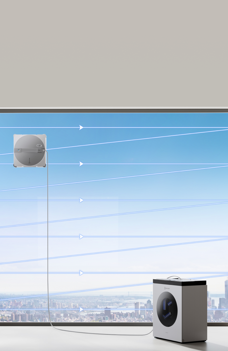 用戶將基站電源線連到插座,即可實現邊插電邊清潔,無需擔心清潔到一半基站電量不足的尷尬情況,解決您的用電焦慮。適用於需要進行大面積窗戶清潔的場景。"首創超旋勁洗功能":指ECOVACS WINBOT W3系列產品在ECOVACS抹窗機械人產品線內首次推出超旋勁洗技術,統計時間截至2025年12月31日。