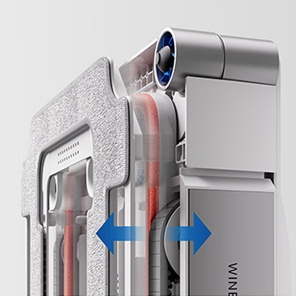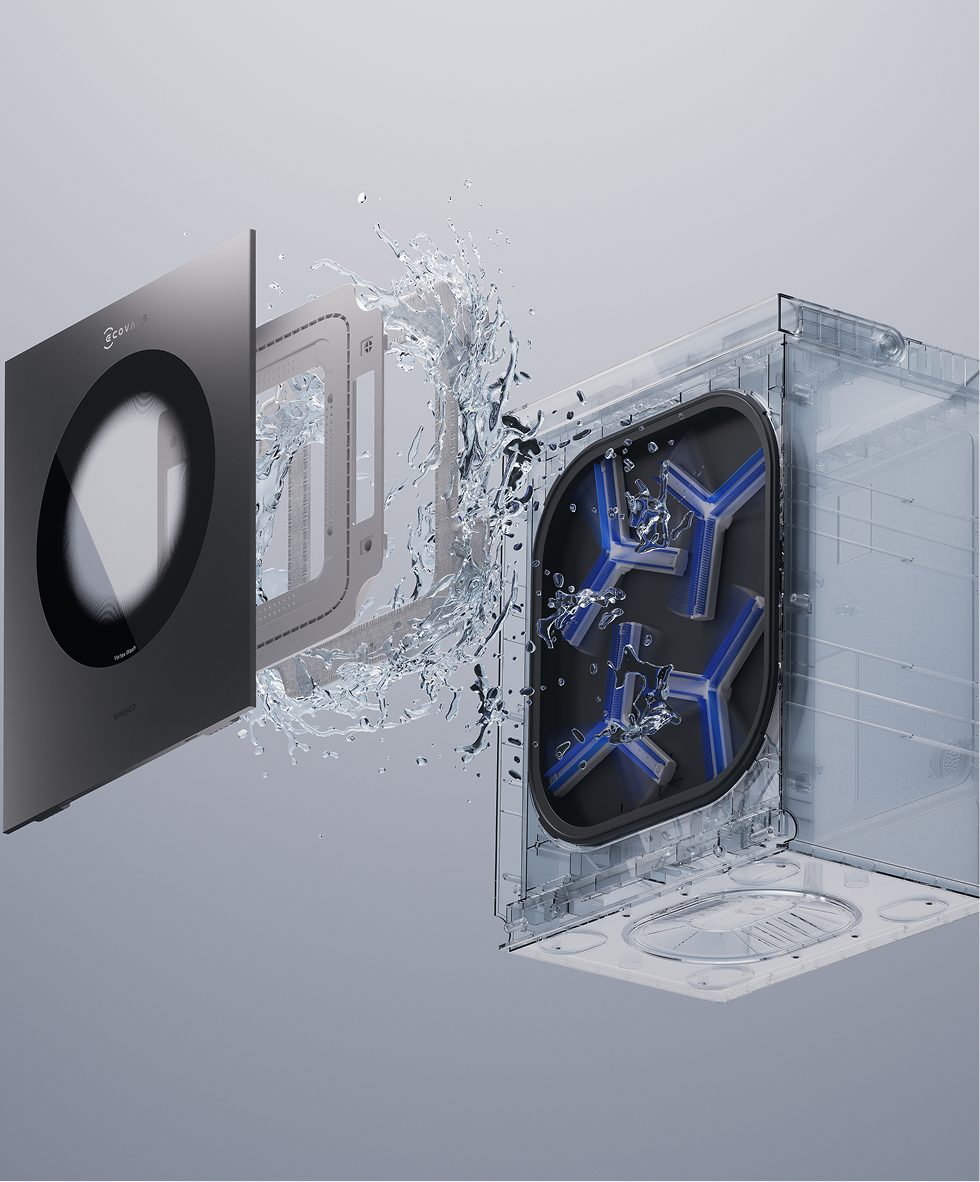 1️⃣ Vortex Wash 超旋勁洗:全能充電站 2.0 🌀 抹布首創「一鍵快拆」設計!抹完窗只要將抹布架放返入基站,系統就會自動開工:刷洗 → 高壓沖洗 → 刮水 → 控濕。內建 20,000Pa 高壓噴淋,抹布污垢去除率高達 96%!☝️